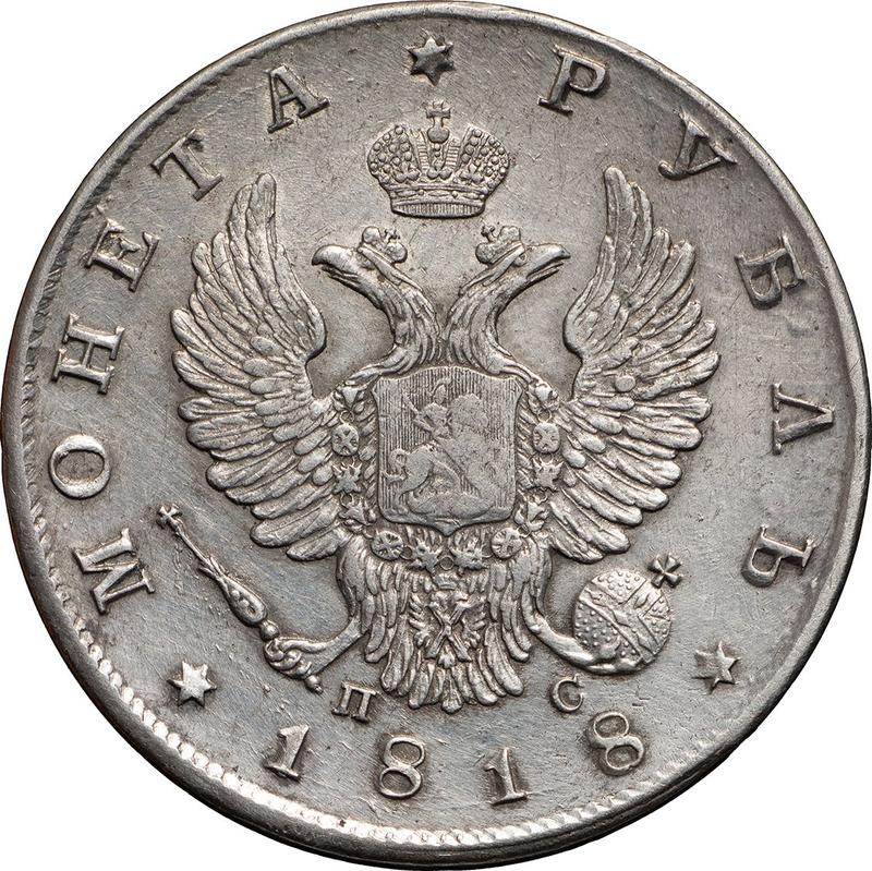 Find out the current coin value of the Russian Rouble 1818 "An eagle with raised wings" with mark СПБ ПС. Eagle 1810. This silver coin from the times of Alexander I struck at the Saint Petersburg Mint. Wondering how much a coin like this is worth? The record price belongs to the lot 297 sold at the Coins and Medals auction for RUB 450,000. Bidding took place October 13, 2023.
