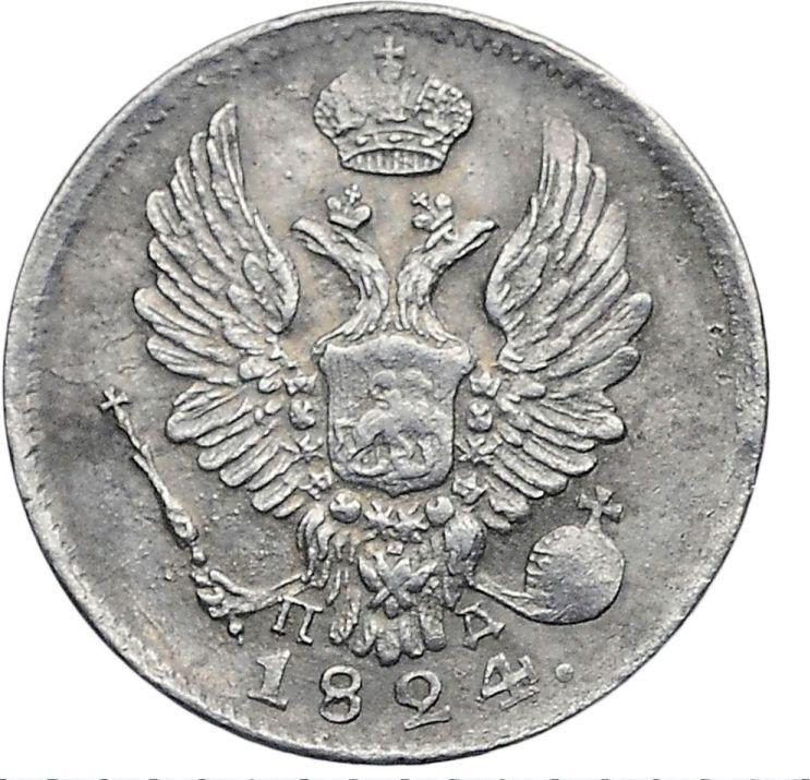 Find out the current coin value of the Russian 5 Kopeks 1824 "An eagle with raised wings" with mark СПБ ПД. This silver coin from the times of Alexander I struck at the Saint Petersburg Mint. Wondering how much a coin like this is worth? The record price belongs to the lot 482 sold at the Morton & Eden Ltd auction for GBP 3,200. Bidding took place June 10, 2014.