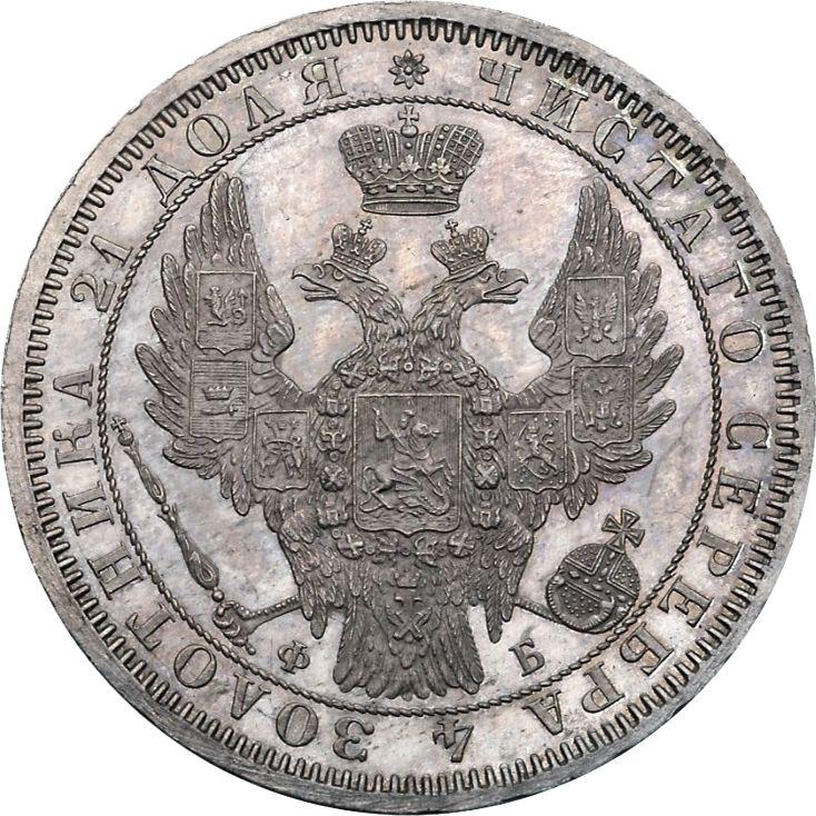 The information on the current value of the Russian coin Rouble 1857 with the letters СПБ ФБ is based on actual auction sales of similar specimens. To reflect the current price level, our service monitors over 590 numismatic companies and records auction results in the coin catalog and auction archive. Please note that the exact value depends directly on the coin's condition, so the average price serves only as an approximate estimate.