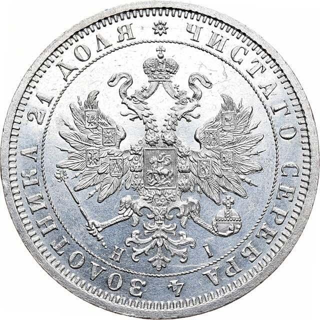 Find out the current coin value of the Russian Rouble 1870 with mark СПБ НІ. This silver coin from the times of Alexander II struck at the Saint Petersburg Mint. Wondering how much a coin like this is worth? The record price belongs to the lot 31777 sold at the Heritage Auctions auction for USD 4,560. Bidding took place April 25, 2019.