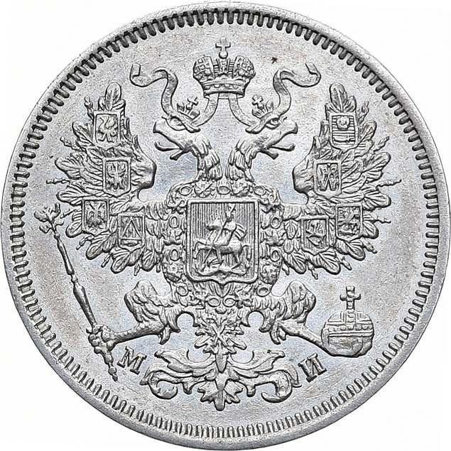 Find out the current coin value of the Russian 20 Kopeks 1861 with mark СПБ МИ. This silver coin from the times of Alexander II struck at the Saint Petersburg Mint. Wondering how much a coin like this is worth? The record price belongs to the lot 267 sold at the MS67 auction for RUB 105,000. Bidding took place December 18, 2019.