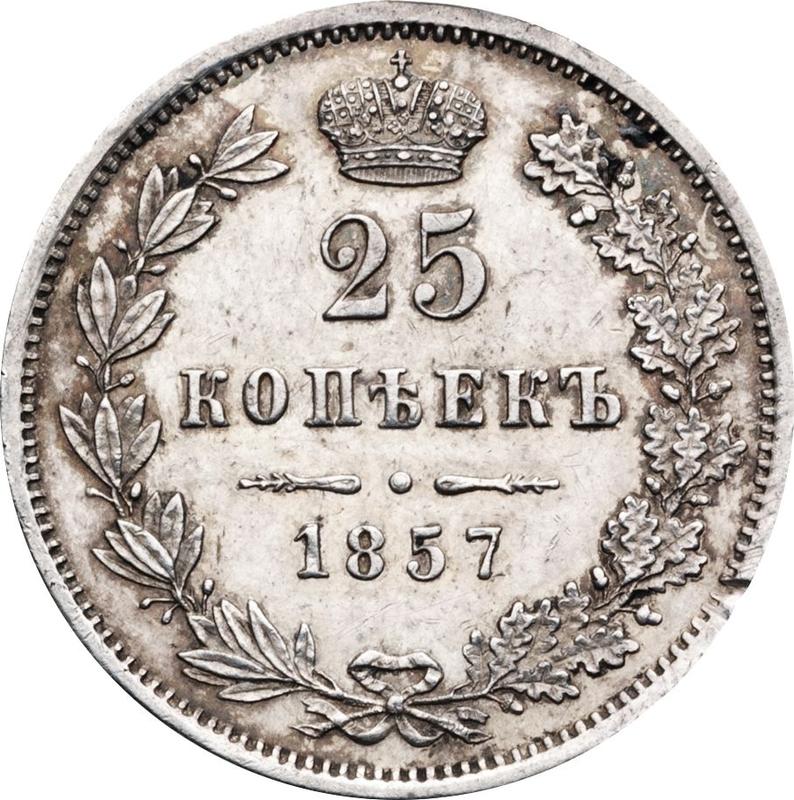 According to the latest data as of December 5, 2025 the average price of a Silver coin 25 Kopeks 1857 "Warsaw Mint" with mark MW is 2100 USD for regular strike and 16000 USD for coins minted using the PROOF technology.