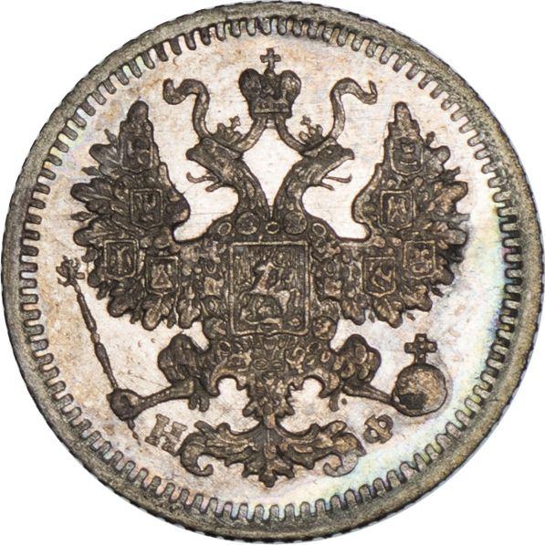 Find out the current coin value of the Russian 5 Kopeks 1881 "Silver 500 samples (bilon)" with mark СПБ НФ. This silver coin from the times of Alexander II struck at the Saint Petersburg Mint. Wondering how much a coin like this is worth? The record price belongs to the lot 231 sold at the Russian Heritage auction for RUB 80,000. Bidding took place October 16, 2022.