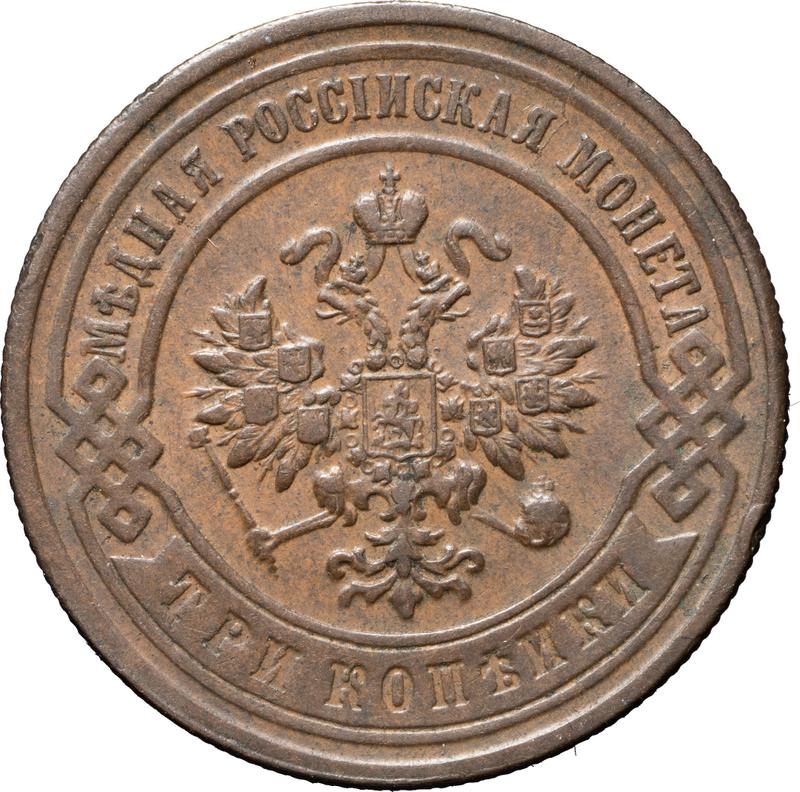 Find out the current coin value of the Russian 3 Kopeks 1892 with mark СПБ. This copper coin from the times of Alexander III struck at the Saint Petersburg Mint. Wondering how much a coin like this is worth? The record price belongs to the lot 217 sold at the AURORA auction for RUB 155,000. Bidding took place September 18, 2025.