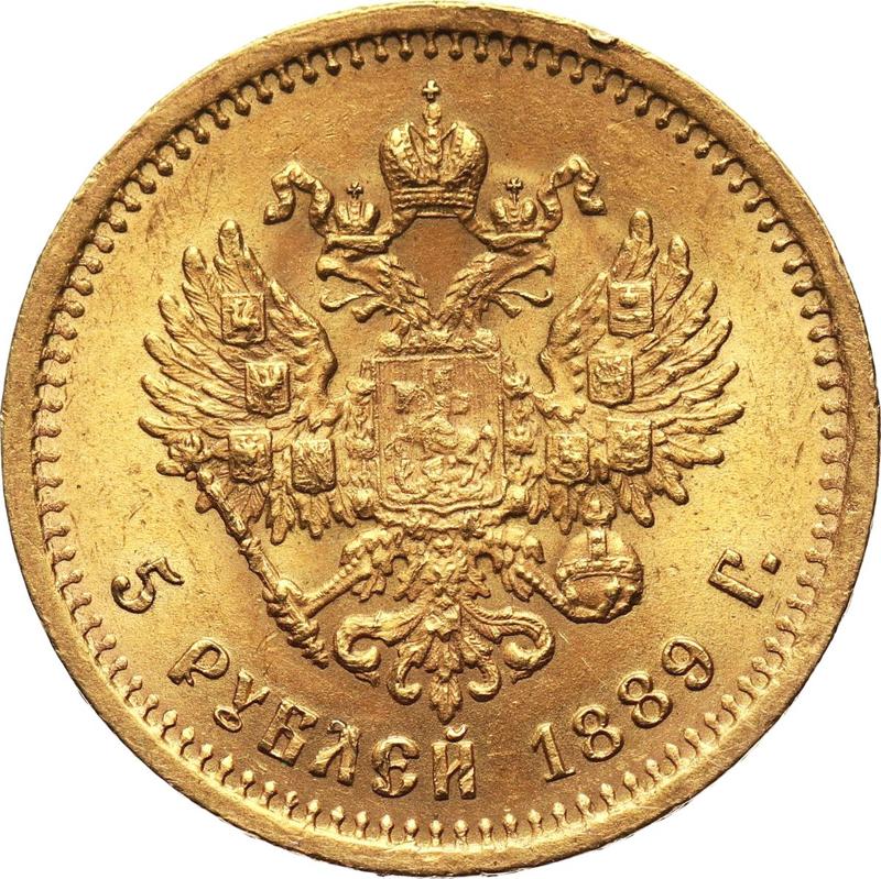 According to the latest data as of December 5, 2025 the average price of a Gold coin 5 Roubles 1889 "Portrait with a short beard" with mark (АГ) is 1700 USD. The coin contains 5,805 g of pure gold, so we do not recommend selling it for less than 797,38 USD, even if it is in poor condition and has no collectible value.