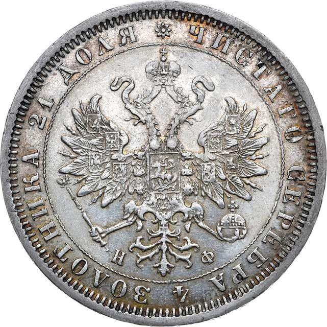 Find out the current coin value of the Russian Rouble 1882 with mark СПБ НФ. This silver coin from the times of Alexander III struck at the Saint Petersburg Mint. Wondering how much a coin like this is worth? The record price belongs to the lot 44309 sold at the Stack's Bowers auction for USD 8,500. Bidding took place April 22, 2023.