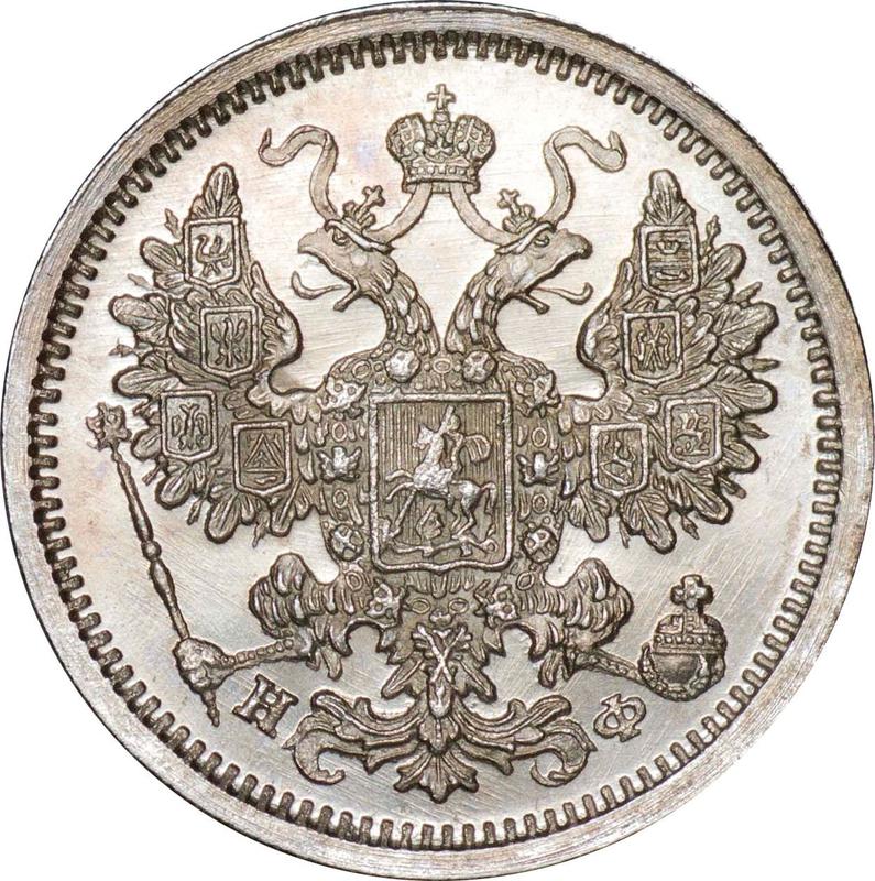 Find out the current coin value of the Russian 15 Kopeks 1882 with mark СПБ НФ. This silver coin from the times of Alexander III struck at the Saint Petersburg Mint. Wondering how much a coin like this is worth? The record price belongs to the lot 240 sold at the Coins and Medals auction for RUB 850,000. Bidding took place April 8, 2023.