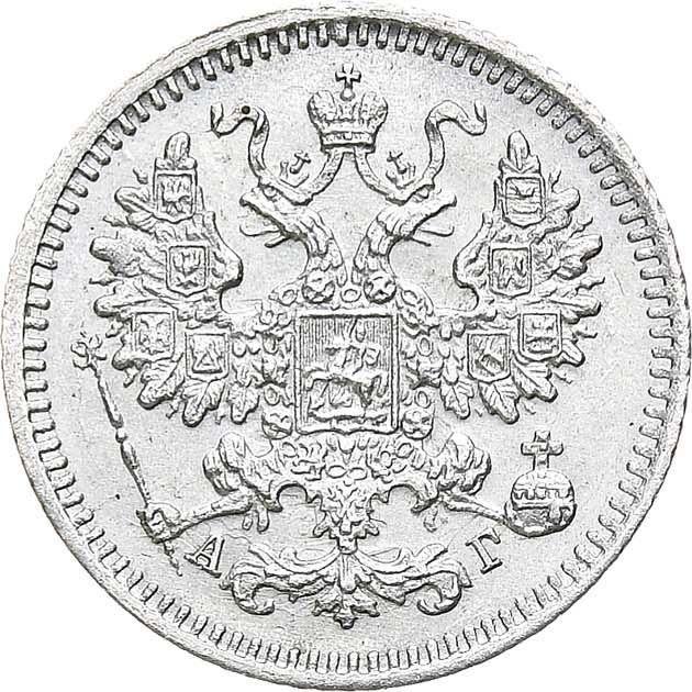 Find out the current coin value of the Russian 5 Kopeks 1885 with mark СПБ АГ. This silver coin from the times of Alexander III struck at the Saint Petersburg Mint. Wondering how much a coin like this is worth? The record price belongs to the lot 150 sold at the MS67 auction for RUB 90,000. Bidding took place November 3, 2021.