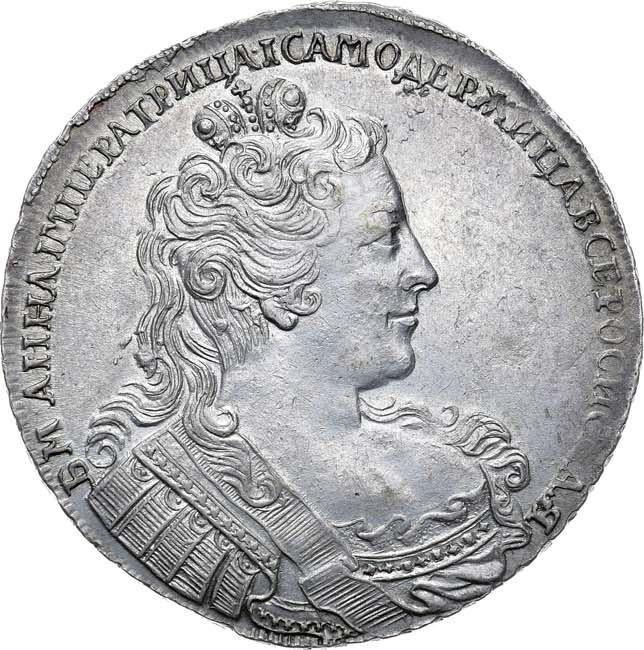 Find out the current coin value of the Russian Rouble 1730 "The corsage is parallel to the circumference". 5 shoulder pads with festoons. This silver coin from the times of Anna Ioannovna struck at the Moscow (Kadashevskaya Sloboda) Mint. Wondering how much a coin like this is worth? The record price belongs to the lot 33 sold at the Alexander auction for USD 24,000. Bidding took place September 21, 2018.