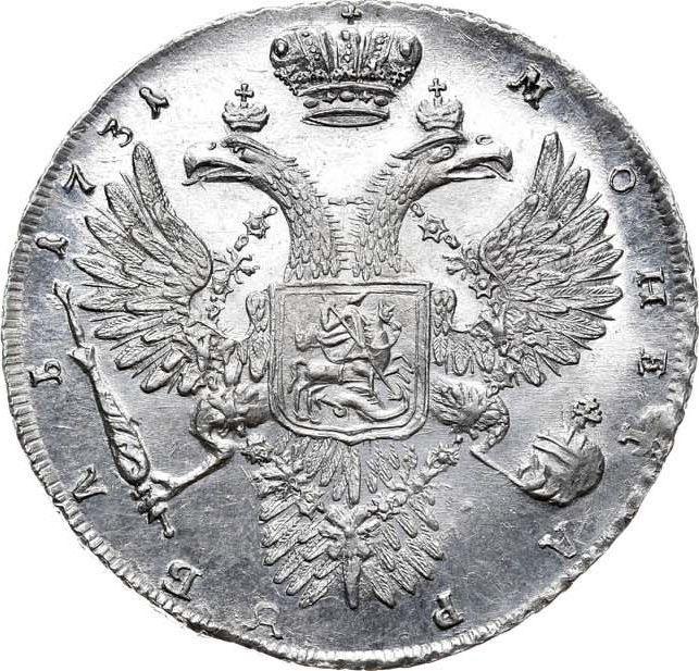 Rouble 1731 "The corsage is parallel to the circumference". Without the brooch on chest. A curl behind the ear (Russia, Anna Ioannovna)