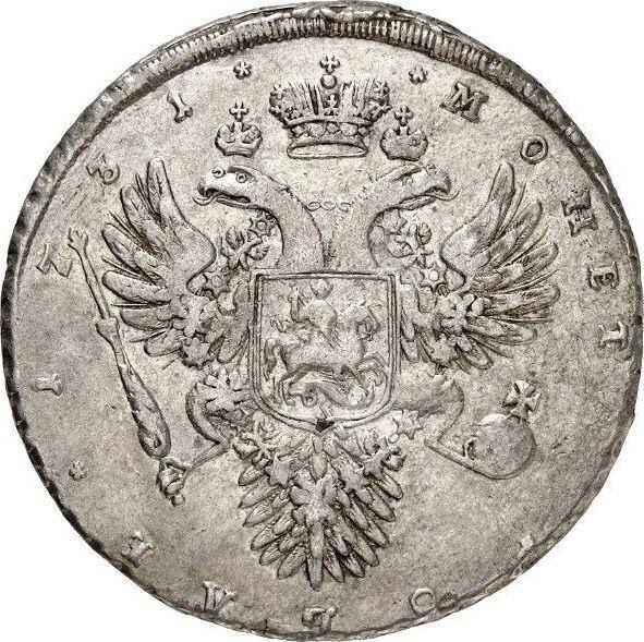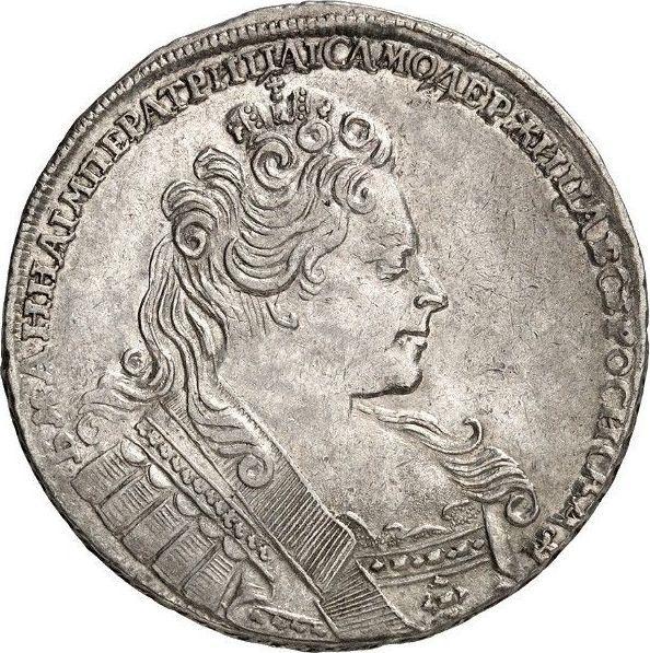 Rouble 1731 "The corsage is parallel to the circumference". With a brooch on the chest. Date wide (Russia, Anna Ioannovna)