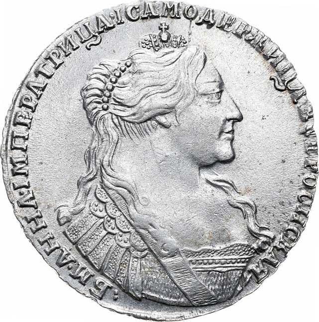 Poltina 1736 "Type 1735". Without a pendant on the chest. Simple cross of orb (Russia, Anna Ioannovna)