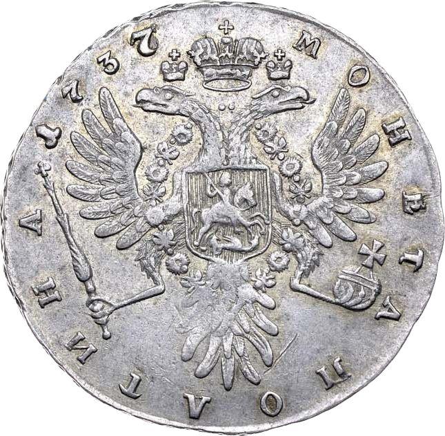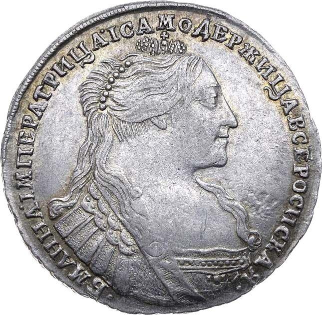 Poltina 1737 "Type 1735". With a pendant on chest. Simple cross of orb (Russia, Anna Ioannovna)