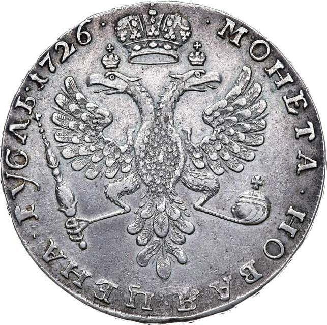 Rouble 1726 "Moscow type, portrait to the left". Narrow tail (Russia, Catherine I)