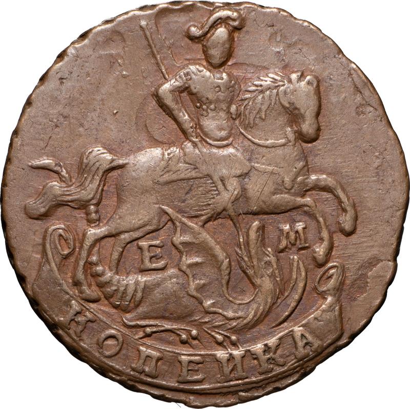 Find out the current coin value of the Russian 1 Kopek 1795 with mark ЕМ. This copper coin from the times of Catherine II struck at the Yekaterinburg Mint. Wondering how much a coin like this is worth? The record price belongs to the lot 1426 sold at the Classical Numismatic Group, LLC auction for USD 2,750. Bidding took place September 25, 2024.