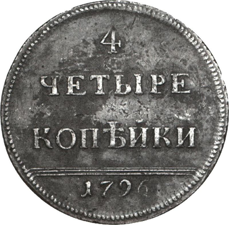 4 Kopeks 1796 "Monogram on the obverse". Diagonally reeded edge (Russia, Catherine II)