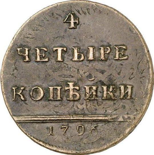 Find out the current coin value of the Russian 4 Kopeks 1796 "Monogram on the obverse". Edge mesh. This copper coin from the times of Catherine II struck at the Nizhny Novgorod, Red, Saint Petersburg, Yekaterinburg, Anninsk Mint. Wondering how much a coin like this is worth? The record price belongs to the lot 1196 sold at the Fritz Rudolf Künker GmbH & Co. KG auction for EUR 46,000. Bidding took place January 28, 2010.