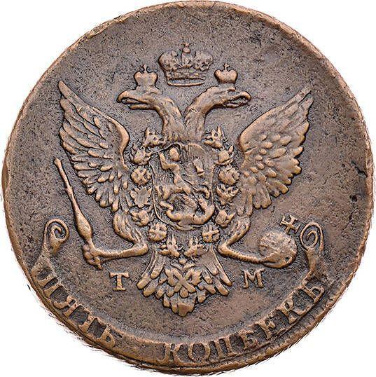 Find out the current coin value of the Russian 5 Kopeks 1787 "Tauride Mint (Feodosia)" with mark ТМ. This copper coin from the times of Catherine II struck at the Feodosia (Tauride) Mint. Wondering how much a coin like this is worth? The record price belongs to the lot 436 sold at the Alexander auction for USD 5,000. Bidding took place January 24, 2009.