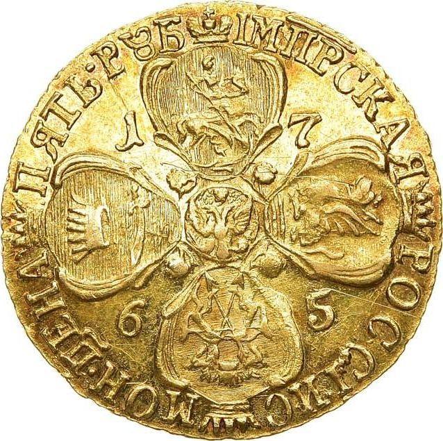 How much is the gold coin of Catherine II 5 Roubles 1765 СПБ "With a scarf"?
