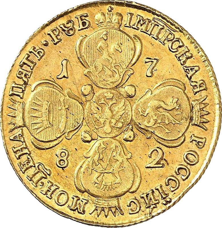 How much is the gold coin of Catherine II 5 Roubles 1782 СПБ?