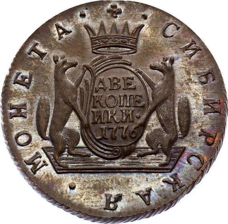 Find out the current coin value of the Russian 2 Kopeks 1776 "Siberian Coin" with mark КМ. Restrike. This copper coin from the times of Catherine II struck at the Suzun Mint. Wondering how much a coin like this is worth? The record price belongs to the lot 2343 sold at the Katz Auction auction for EUR 1,000. Bidding took place December 17, 2020.