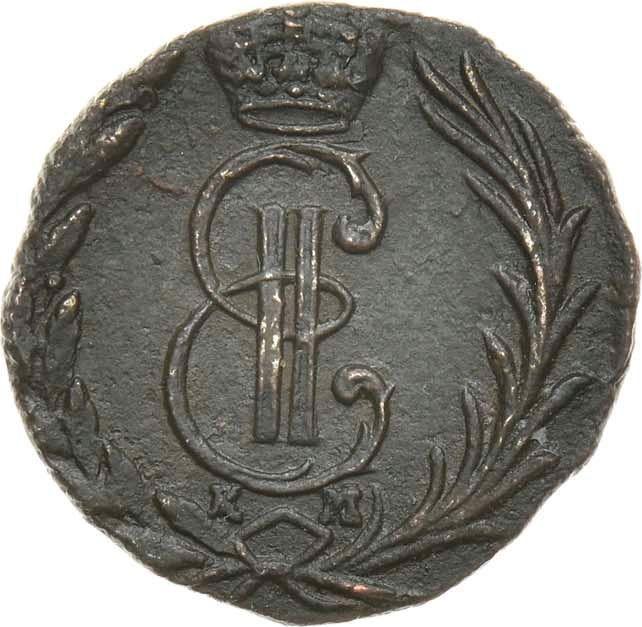 Find out the current coin value of the Russian Denga (1/2 Kopek) 1772 "Siberian Coin" with mark КМ. This copper coin from the times of Catherine II struck at the Suzun Mint. Wondering how much a coin like this is worth? The record price belongs to the lot 43 sold at the Russian Heritage auction for RUB 43,000. Bidding took place April 15, 2023.