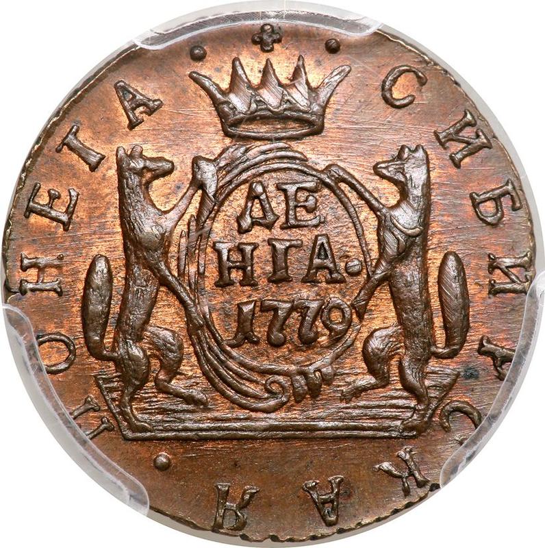 Find out the current coin value of the Russian Denga (1/2 Kopek) 1779 "Siberian Coin" with mark КМ. Restrike. This copper coin from the times of Catherine II struck at the Suzun Mint. Wondering how much a coin like this is worth? The record price belongs to the lot 3553 sold at the Ira & Larry Goldberg Coins & Collectibles, Inc. auction for USD 1,645. Bidding took place January 26, 2014.