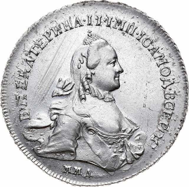 Find out the current coin value of the Russian Rouble 1763 "With a scarf" with mark ММД EI. This silver coin from the times of Catherine II struck at the Red Mint. Wondering how much a coin like this is worth? The record price belongs to the lot 53 sold at the Alexander auction for USD 35,000. Bidding took place September 21, 2018.