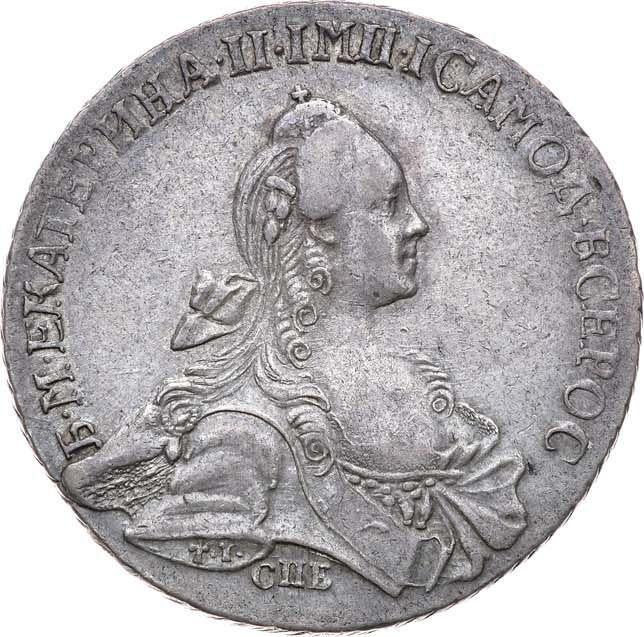 Find out the current coin value of the Russian Rouble 1767 "Petersburg type without a scarf" with mark СПБ EI T.I.. Rough coinage. This silver coin from the times of Catherine II struck at the Saint Petersburg Mint. Wondering how much a coin like this is worth? The record price belongs to the lot 56 sold at the Alexander auction for USD 33,000. Bidding took place September 21, 2018.