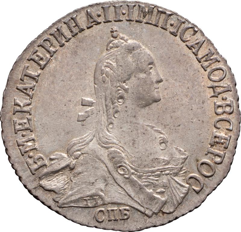 Find out the current coin value of the Russian 20 Kopeks 1770 "Without a scarf" with mark СПБ T.I.. This silver coin from the times of Catherine II struck at the Saint Petersburg Mint. Wondering how much a coin like this is worth? The record price belongs to the lot 72 sold at the AURORA auction for RUB 310,000. Bidding took place August 21, 2025.