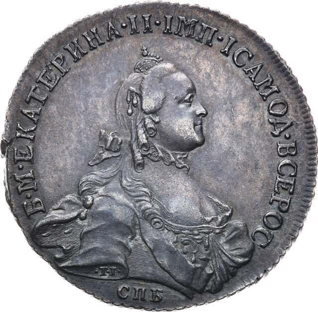Find out the current coin value of the Russian Poltina 1762 "With a scarf" with mark СПБ НК T.I.. This silver coin from the times of Catherine II struck at the Saint Petersburg Mint. Wondering how much a coin like this is worth? The record price belongs to the lot 666 sold at the Fritz Rudolf Künker GmbH & Co. KG auction for EUR 15,000. Bidding took place February 6, 2014.