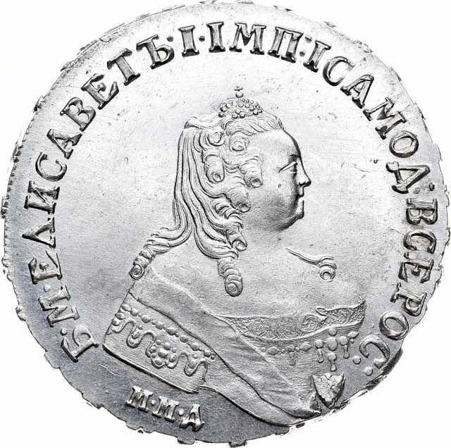 Find out the current coin value of the Russian Rouble 1754 "Moscow type" with mark ММД ЕI. Large crown over the eagle. This silver coin from the times of Elizabeth struck at the Red Mint. Wondering how much a coin like this is worth? The record price belongs to the lot 346 sold at the Rare Coins auction for USD 9,000. Bidding took place April 22, 2017.