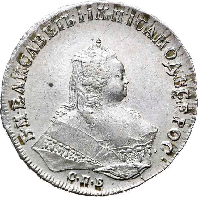 How much is the silver coin of Elizabeth Rouble 1745 СПБ "Petersburg type"?