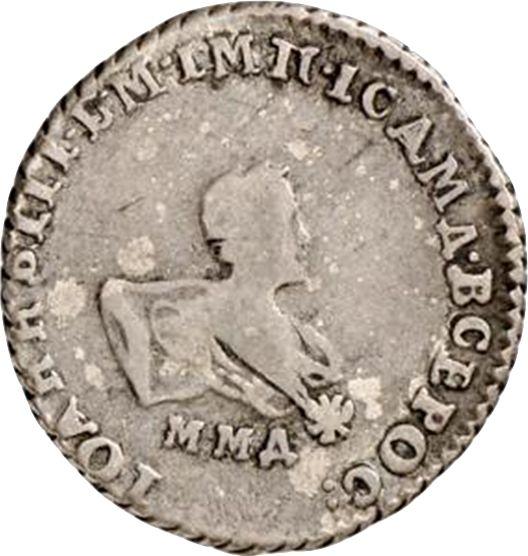 Find out the current coin value of the Russian Grivennik (10 Kopeks) 1741 with mark ММД. "САМД ВСЕРОСС". This silver coin from the times of Ivan VI Antonovich struck at the Red Mint. Wondering how much a coin like this is worth? The record price belongs to the lot 182 sold at the Rare Coins auction for RUB 172,500. Bidding took place October 2, 2021.