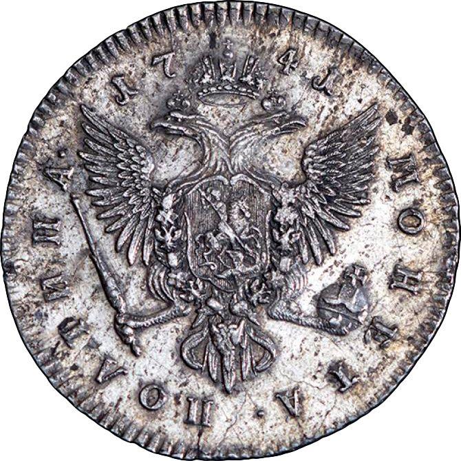 Find out the current coin value of the Russian Poltina 1741 "Petersburg type" with mark СПБ. Edge mesh. This silver coin from the times of Ivan VI Antonovich struck at the Saint Petersburg Mint. Wondering how much a coin like this is worth? The record price belongs to the lot 65 sold at the Russian Heritage auction for USD 310,000. Bidding took place October 15, 2017.
