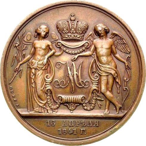 Medal 1841 H. GUBE. FECIT "In memory of the wedding of the heir to the throne". Copper (Russia, Nicholas I)
