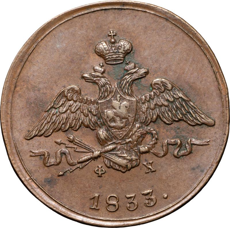 1 Kopek 1833 ЕМ ФХ "An eagle with lowered wings" (Russia, Nicholas I)