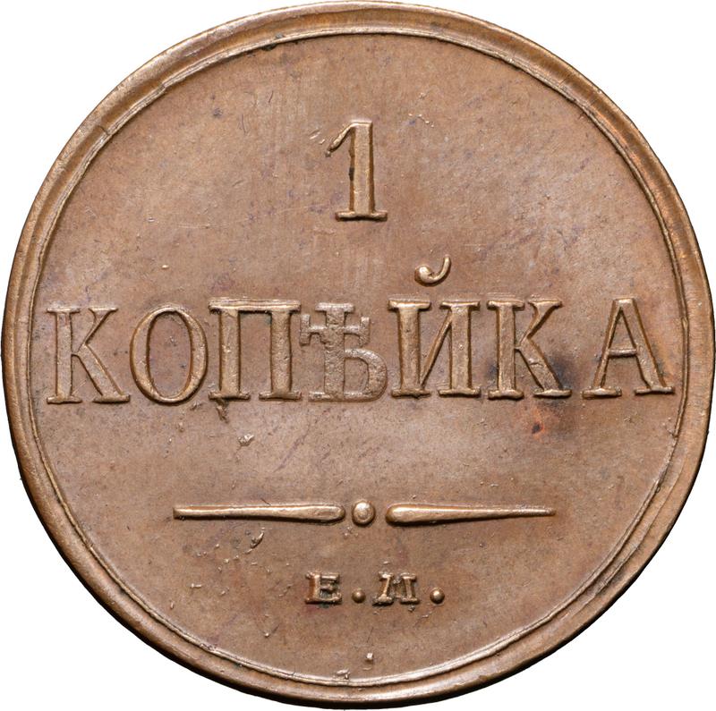 How much is the copper coin of Nicholas I 1 Kopek 1833 ЕМ ФХ "An eagle with lowered wings"?