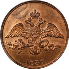 According to the latest data as of December 5, 2025 the average price of a coin 2 Kopeks 1836 "An eagle with lowered wings" with mark СМ, Restrike is 1100 USD. The coin is made of non-precious metal, so in poor condition it may have extremely low value and liquidity.
