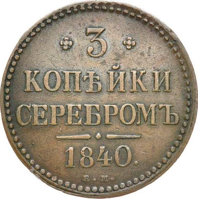 3 Kopeks 1840 ЕМ. The monogram is ordinary. "EM" small (Russia, Nicholas I)