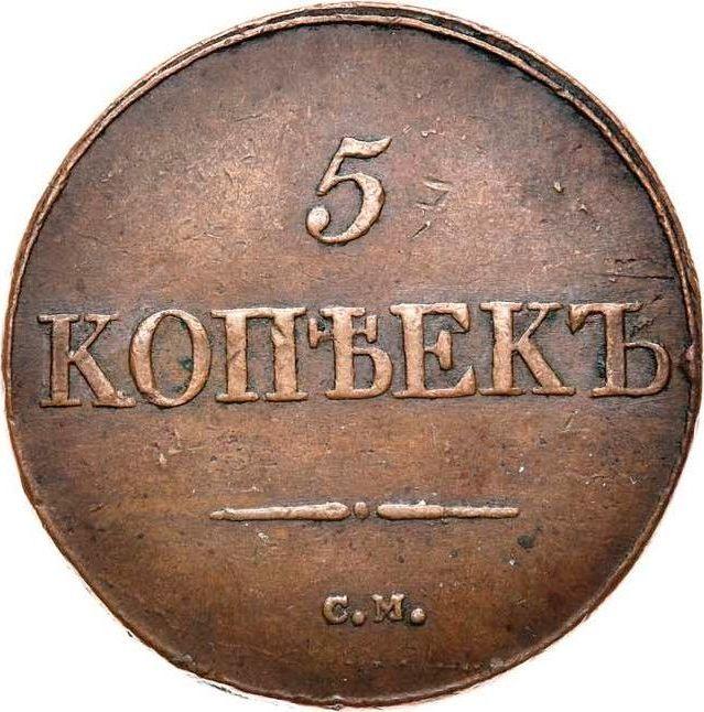 How much is the copper coin of Nicholas I 5 Kopeks 1831 СМ "An eagle with lowered wings"?