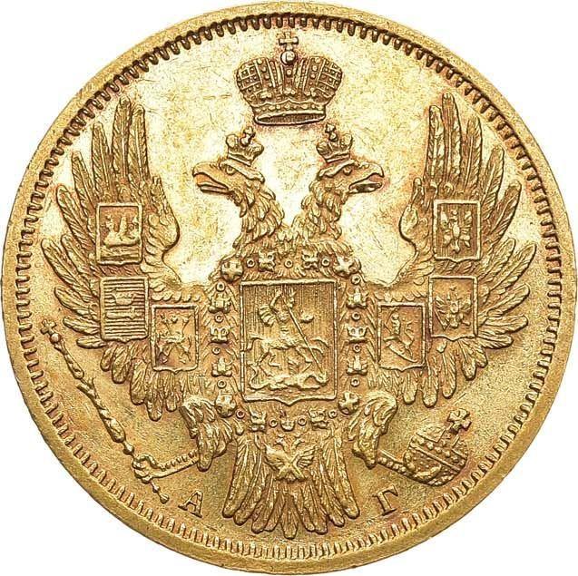 Find out the current coin value of the Russian 5 Roubles 1850 with mark СПБ АГ. Eagle 1847-1849. This gold coin from the times of Nicholas I struck at the Saint Petersburg Mint. Wondering how much a coin like this is worth? The record price belongs to the lot 1044 sold at the RedSquare Auction (Красная Площадь) auction for RUB 570,000. Bidding took place November 5, 2023.