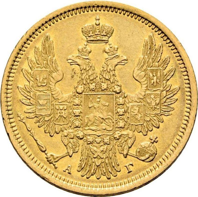 According to the latest data as of December 5, 2025 the average price of a Gold coin 5 Roubles 1851 with mark СПБ АГ is 2400 USD for regular strike and 8100 USD for coins minted using the PROOF technology. The coin contains 5,9972 g of pure gold, so we do not recommend selling it for less than 817,82 USD, even if it is in poor condition and has no collectible value.