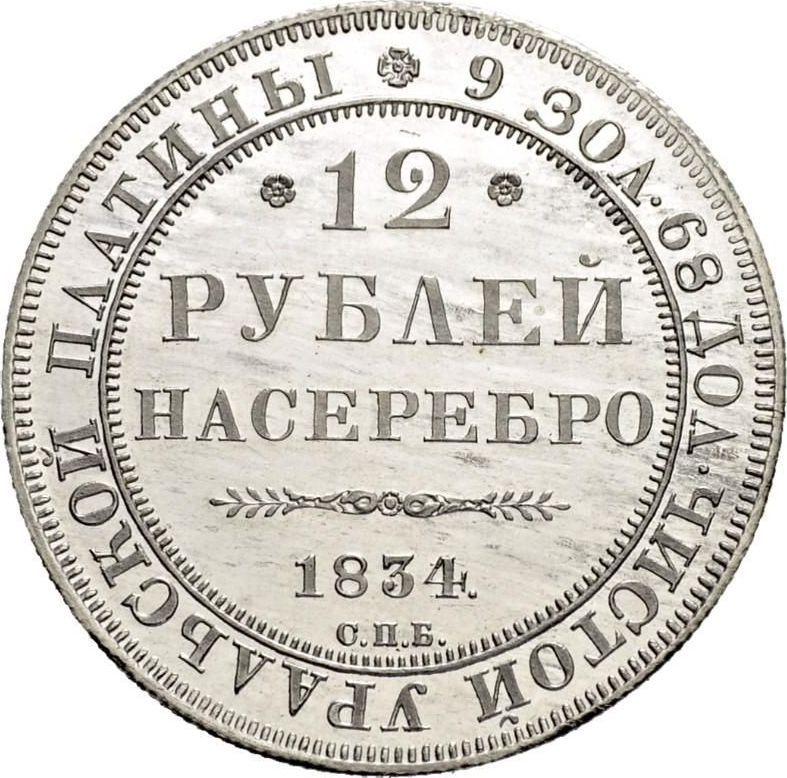 How much is the platinum coin of Nicholas I 12 Roubles 1834 СПБ?