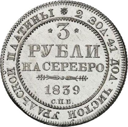 How much is the platinum coin of Nicholas I 3 Roubles 1839 СПБ?