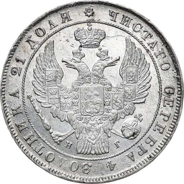 Find out the current coin value of the Russian Rouble 1837 "The eagle of the sample of 1844" with mark СПБ НГ. Wreath 7 links. This silver coin from the times of Nicholas I struck at the Saint Petersburg Mint. Wondering how much a coin like this is worth? The record price belongs to the lot 31484 sold at the Heritage Auctions auction for USD 4,320. Bidding took place September 7, 2017.