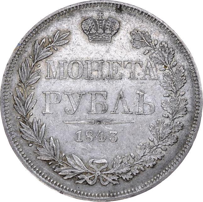 Rouble 1843 MW "Warsaw Mint". The eagle's tail is straight. Wreath 7 links (Russia, Nicholas I)