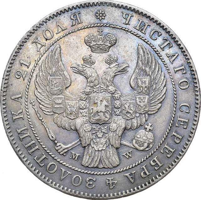 Rouble 1844 MW "Warsaw Mint". The eagle's tail is straight (Russia, Nicholas I)