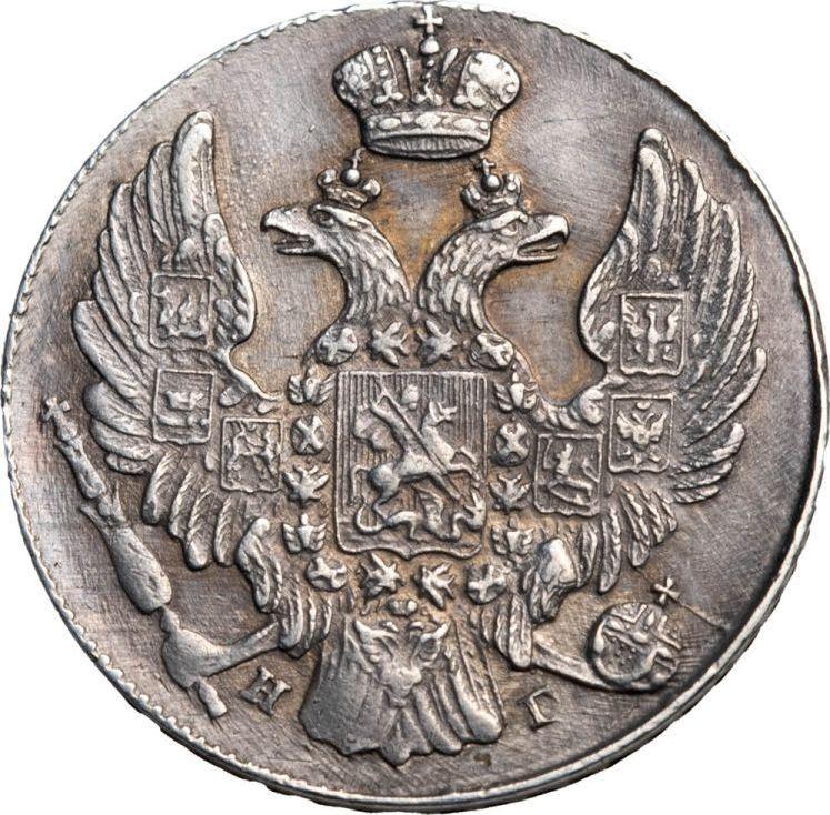 Find out the current coin value of the Russian 10 Kopeks 1834 "Eagle 1832-1839" with mark СПБ НГ. This silver coin from the times of Nicholas I struck at the Saint Petersburg Mint. Wondering how much a coin like this is worth? The record price belongs to the lot 8575 sold at the Fritz Rudolf Künker GmbH & Co. KG auction for EUR 3,000. Bidding took place October 9, 2008.