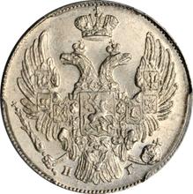 The information on the current value of the Russian coin 10 Kopeks 1834 "Eagle 1832-1839" with the letters СПБ НГ is based on actual auction sales of similar specimens. To reflect the current price level, our service monitors over 590 numismatic companies and records auction results in the coin catalog and auction archive. Please note that the exact value depends directly on the coin's condition, so the average price serves only as an approximate estimate.